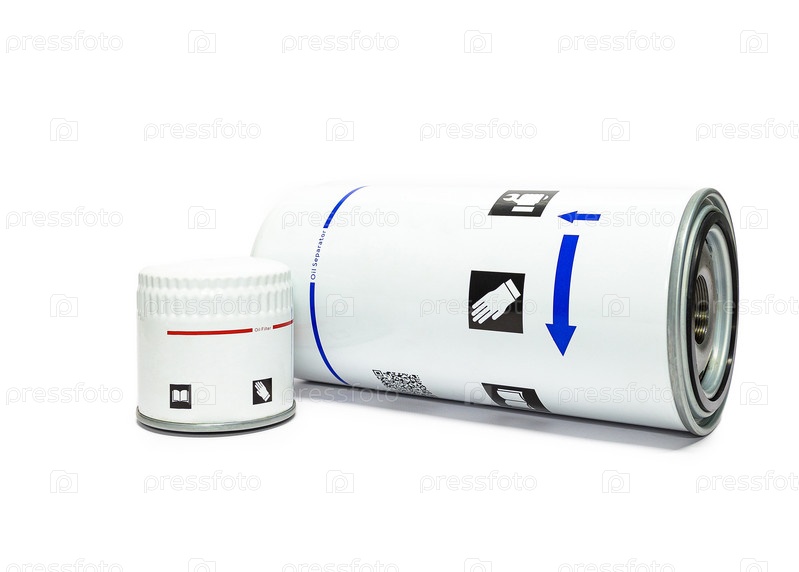 Масляные фильтры для компрессора на белом фоне