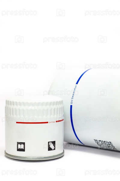 Масляные фильтры для компрессора на белом фоне
