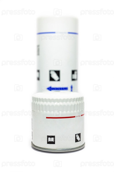 Масляные фильтры для компрессора на белом фоне