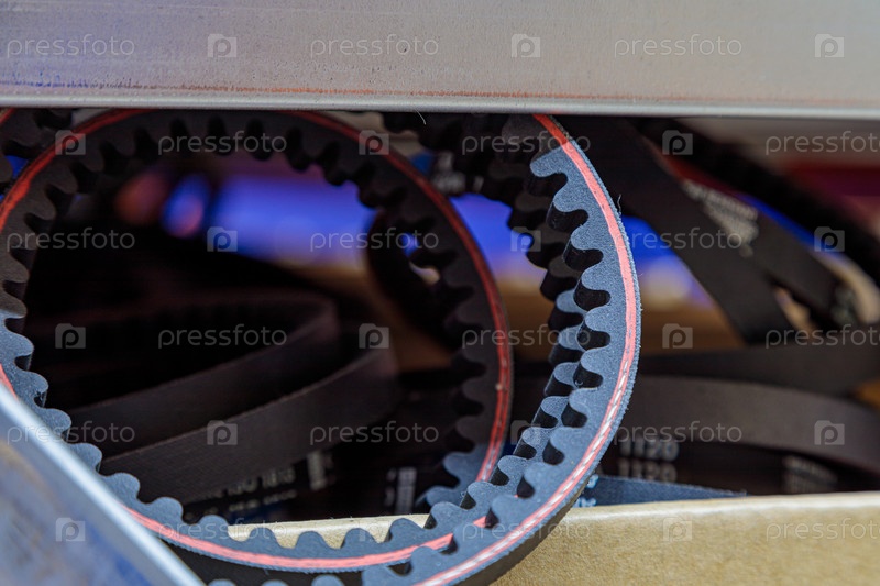 Зубчатый приводной ремень для компрессора в коробке в наличии. Крупный план