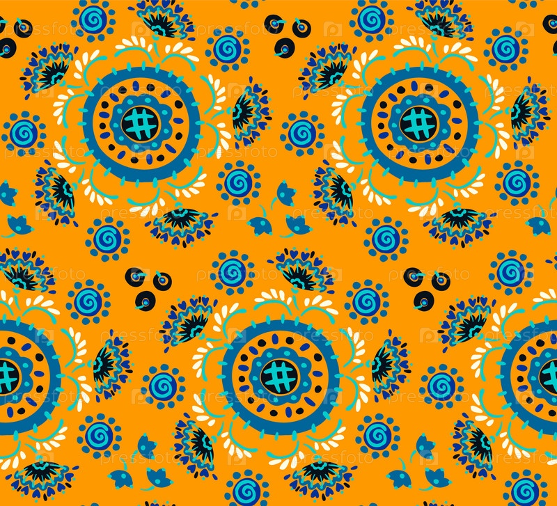 Бесшовный узор с фантазийными цветами, этнический вращающийся повторяющийся дизайн ткани и плитки, натуральные обои, иллюстрация завитка цветочного декора. Пейсли печать рисованной элементы.Украинский узор