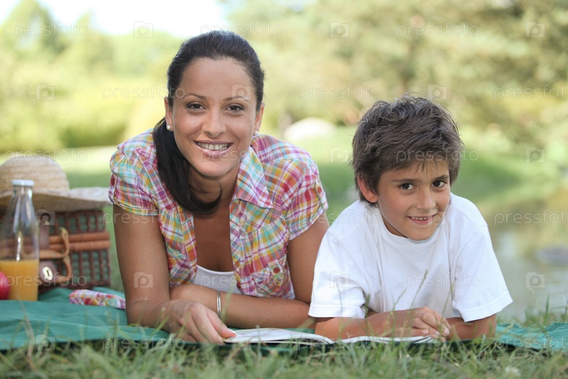 Мать и сын наслаждаются пикником