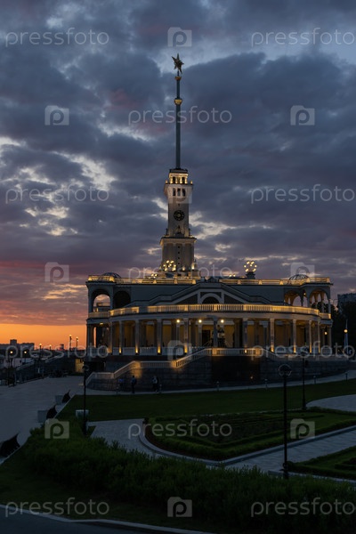 Москва. Здание Северного речного вокзала на закате