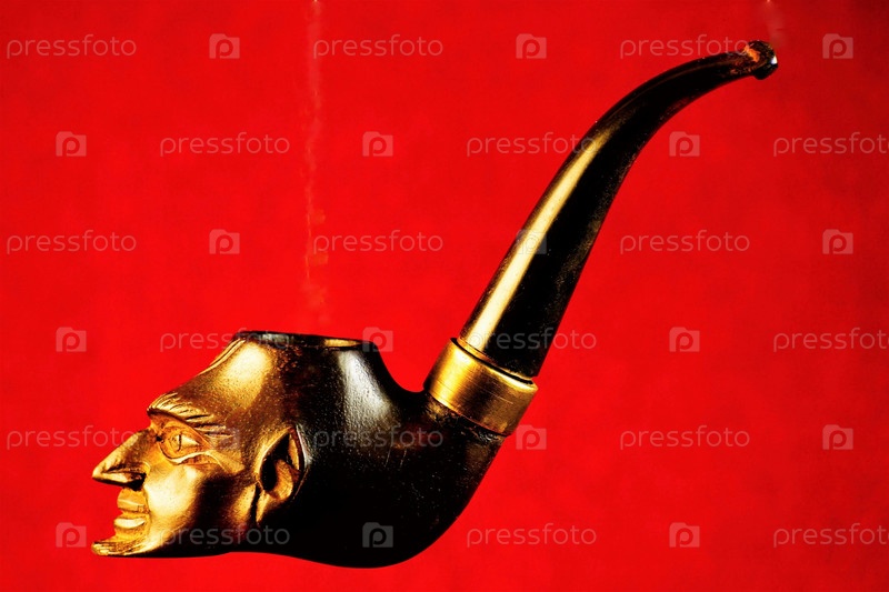 Курительная трубка в виде злого духа Мефистофеля на красном фоне