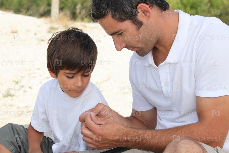 Отец и сын рыбачат вместе