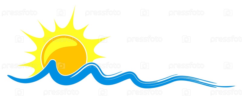Логотип рассвета солнца с голубым морем
