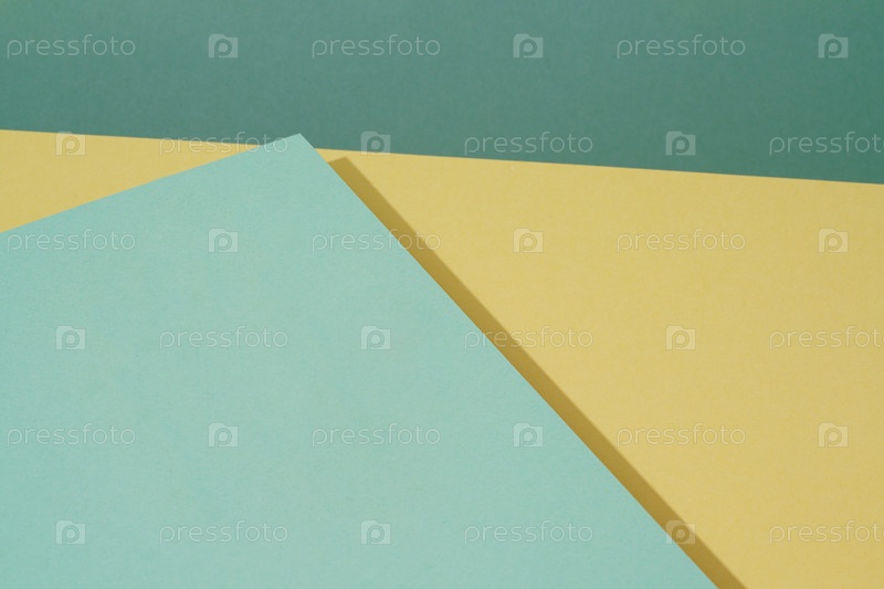 Красочный фон из зеленой и желтой бумаги с тенью. Абстрактные геометрические