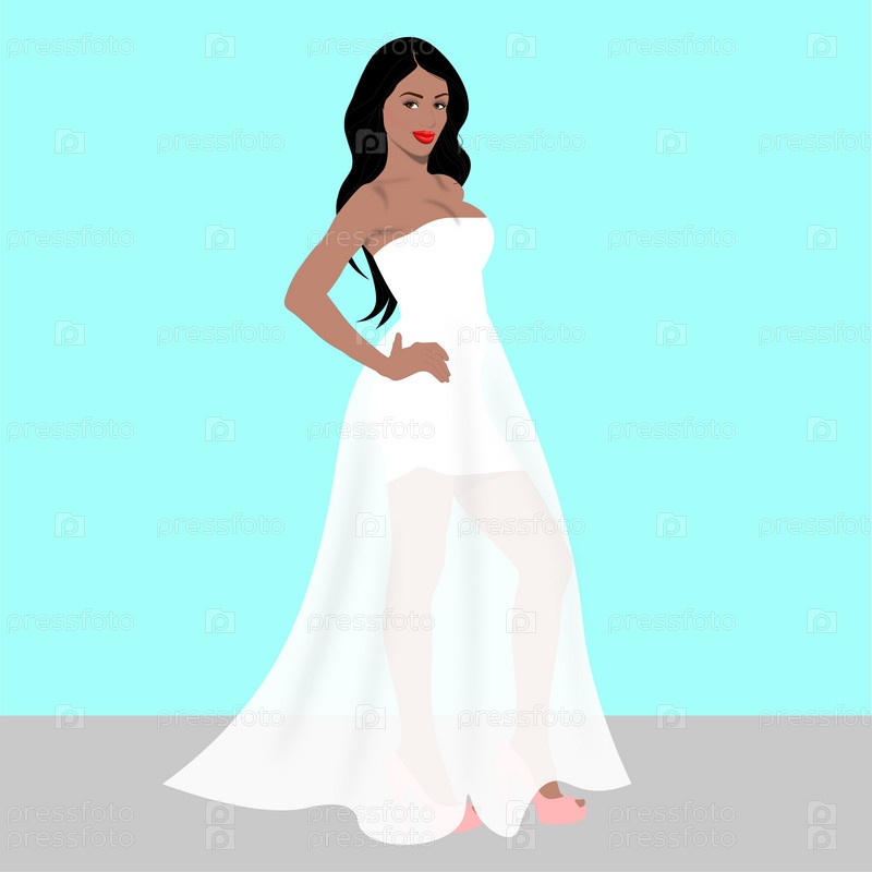 Девушка с пухлыми красными губами в белом платье