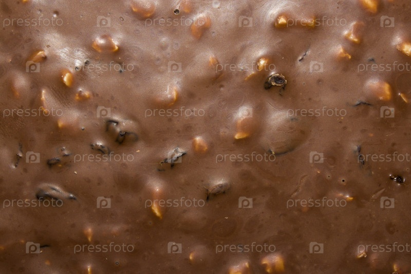 Молочный шоколад с измельченными орехами, вид сверху.The texture of milk chocolate with crushed nuts