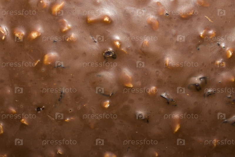 Молочный шоколад с измельченными орехами, вид сверху.The texture of milk chocolate with crushed nuts