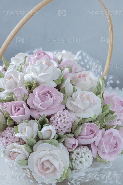 Зефирный букет цветов в подарочной коробке на светлом фоне