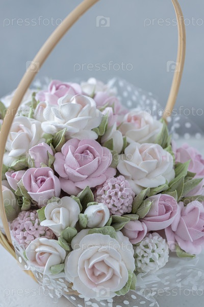 Зефирный букет цветов в подарочной коробке на светлом фоне