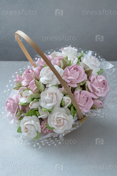 Зефирный букет цветов в подарочной коробке на светлом фоне