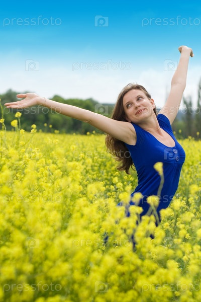 Счастливая девушка на лугу