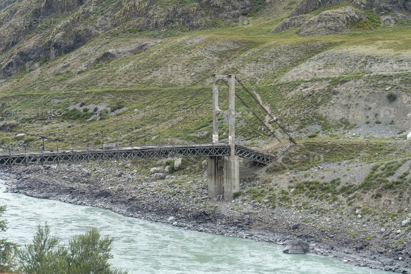 Мост через горную реку Чуя, место слияния рек Чуя и Катунь. Алтай, Сибирь, Россия