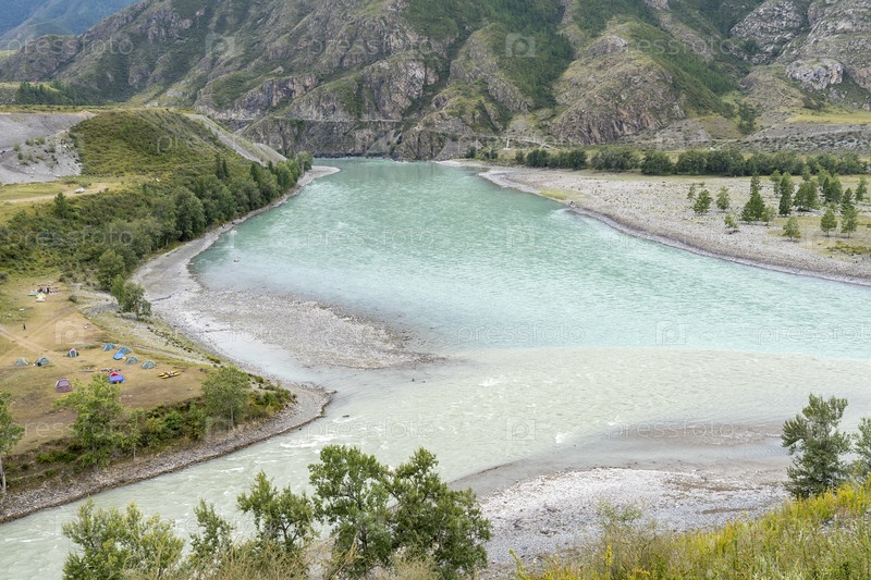 Реки Чуя и Катунь сливаются в горах. Алтай, Сибирь, туризм в России