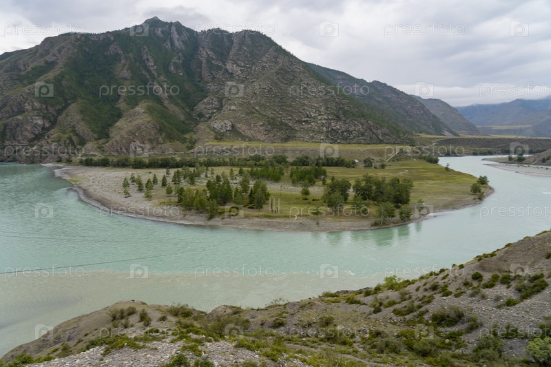 Реки Чуя и Катунь сливаются в горах. Алтай, Сибирь, туризм в России