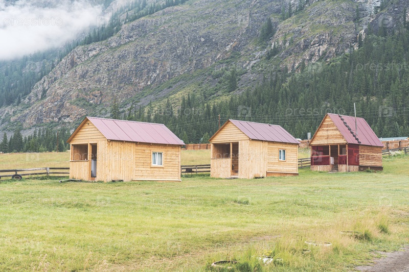 Деревянный дом в горах, база отдыха в горах, коттеджи в долине гор,
