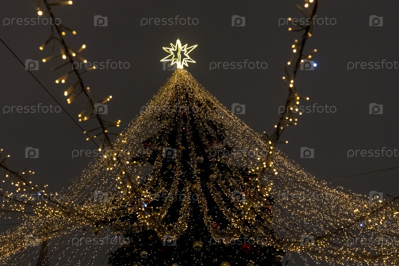Рождество в Москве, новогоднее и рождественское украшение улиц города. красивое освещение различных городских зданий на Рождество в Москве