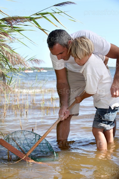 Отец и сын рыбачат вместе
