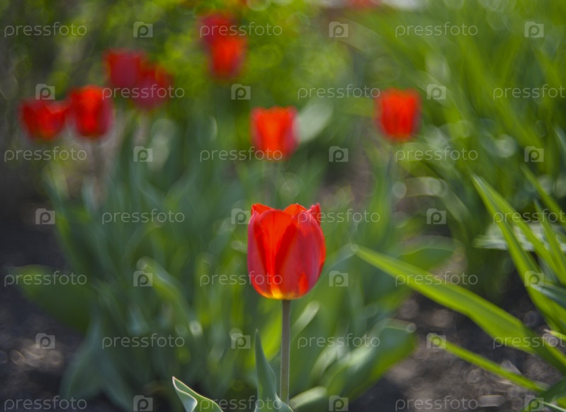 Красные цветы тюльпанов и боке. Красивое размытие фото. Тюльпаны летом