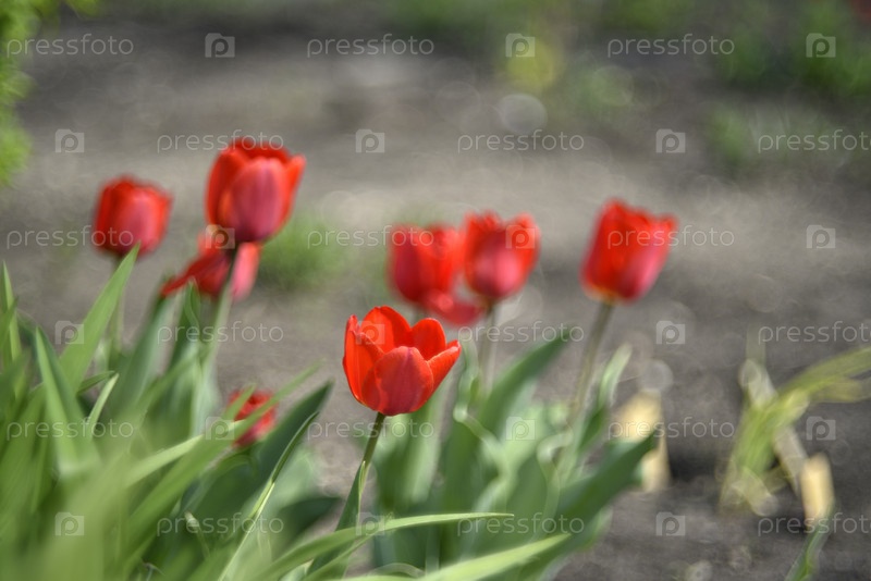 Красные цветы тюльпанов и боке. Красивое размытие фото. Тюльпаны летом
