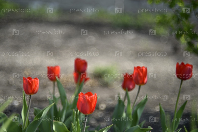 Красные цветы тюльпанов и боке. Красивое размытие фото. Тюльпаны летом