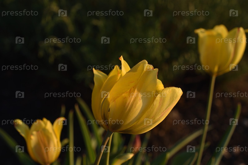 Желтые тюльпаны вечером летом. Красивые желтые цветы тюльпана. Золотой час