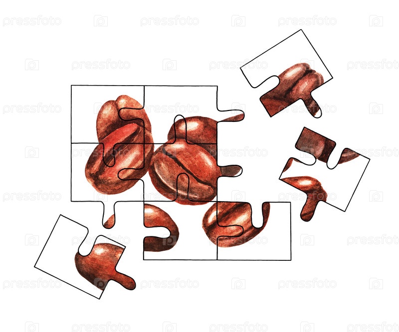 Головоломка. Кофейные зерна. Акварель