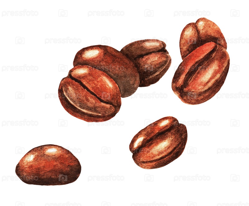 Кофейные зерна. Акварель