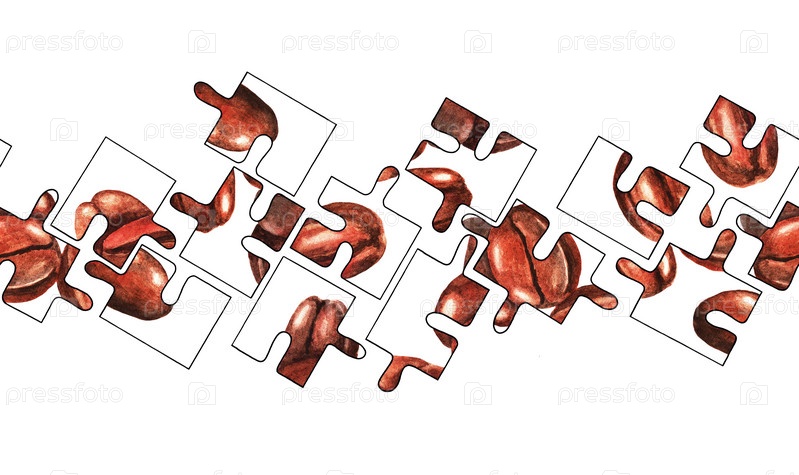 Головоломка. Кофейные зерна. Акварель