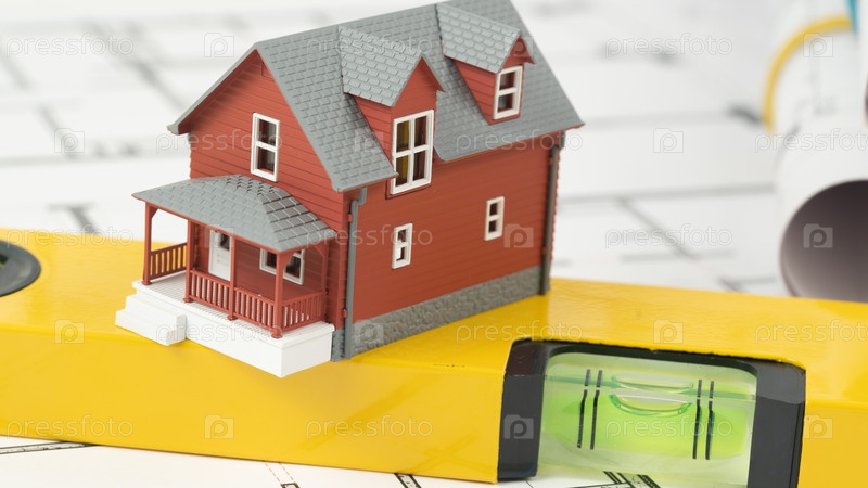Модель дома на архитектурных чертежах
