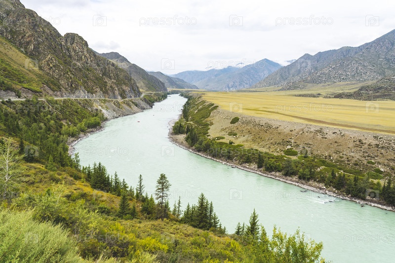 Река Катунь в горах. Алтай, Сибирь, Россия