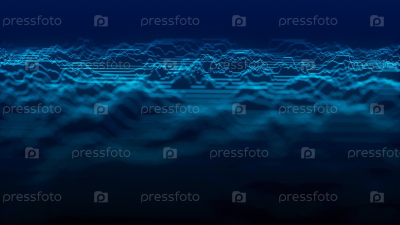 Абстрактный фон с синей динамической волной. Визуализация потока данных. Активная музыкальная волна в космосе. Визуализация больших данных. 3D-визуализация