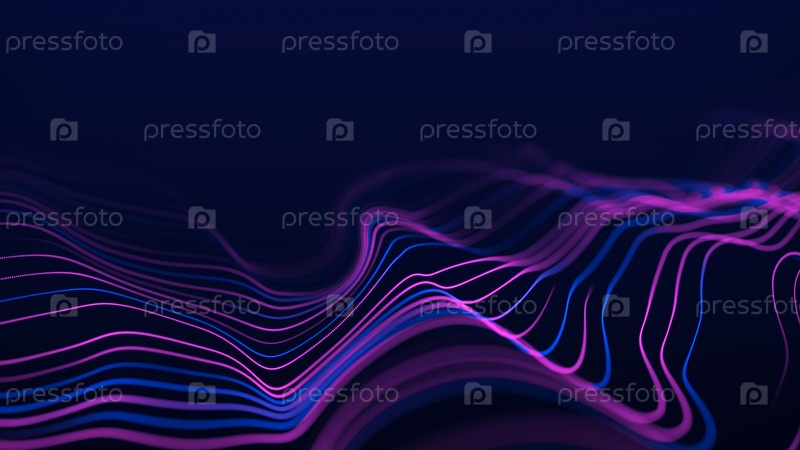 Динамическая волна голубых и розовых линий на заднем плане. Визуализация больших данных. Футуристическая волна частиц. Наука и технология. 3D-визуализация