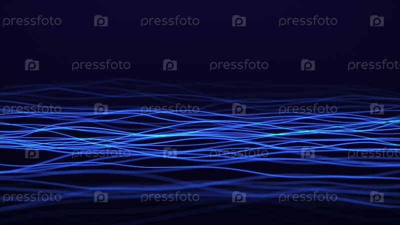 Абстрактный фон с волновым потоком частиц. Цифровые технологии оптоволокна. Иллюстрация сетевого соединения. Большой поток данных. 3D-рендеринг