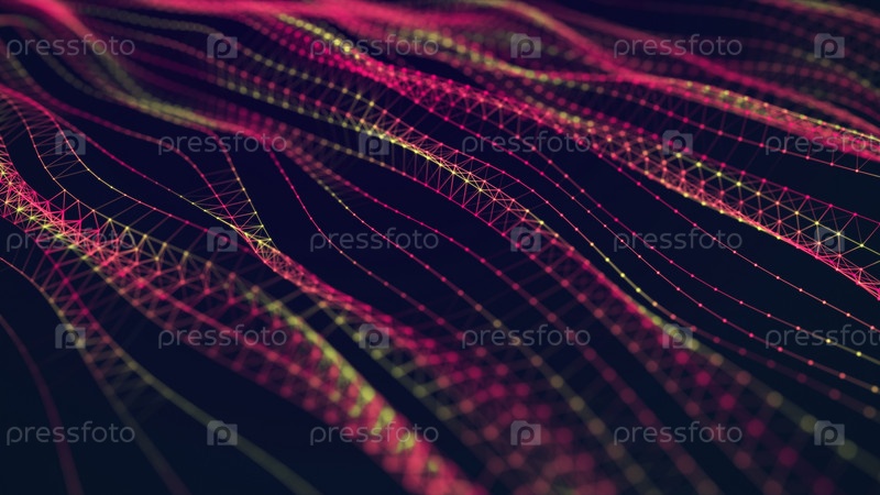 ДНК из движущейся волны и частиц Абстрактный темный фон Медицинская наука Биотехнология Понятие инфицированной генной клетки Точки, соединенные линиями 3D визуализация