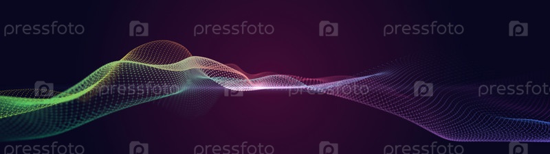 Футуристическая музыкальная светящаяся волна. Концепция больших данных. Подключение к сети. Кибернетика. Абстрактный фон из цветных линий с точками. 3d визуализация