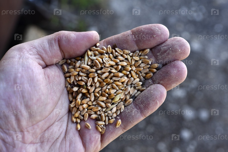 Пшеница в руках фермера. Зерно в руке. Производство пшеницы