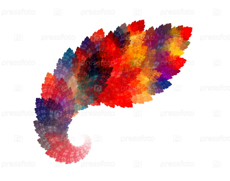 Абстрактный элемент в виде разноцветного спирального листа растения. Фрактальная графика. Элемент дизайна. белый фон