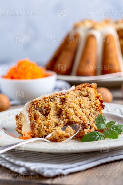 Кусок вкусного морковного пирога