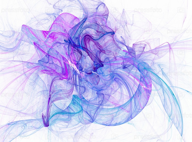 Голубая фрактальная абстракция, дым и свет. белый фон
