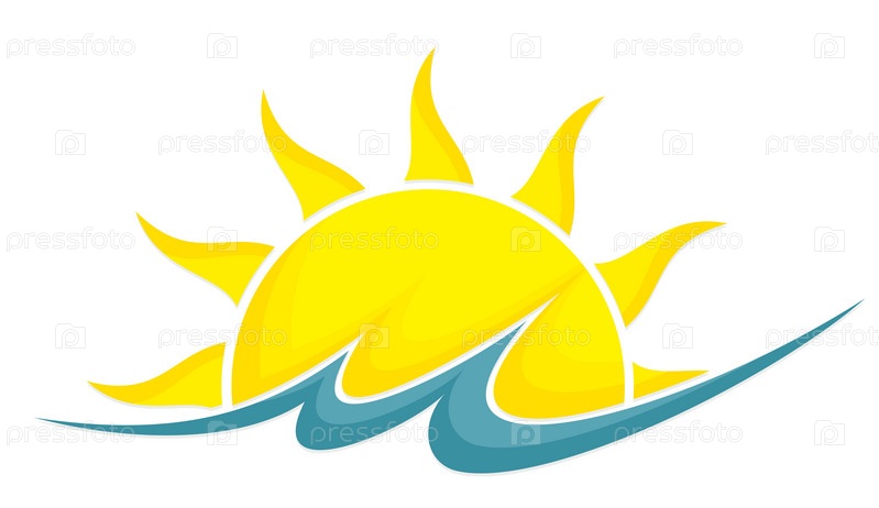 Логотип рассвета солнца с голубой волной