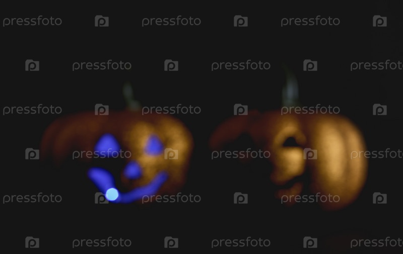 Расфокусированный фон для Хэллоуина. Тыква Хэллоуина, фонарь Джека, на черном синем фоне. праздник Хэллоуин. Копировать пространство
