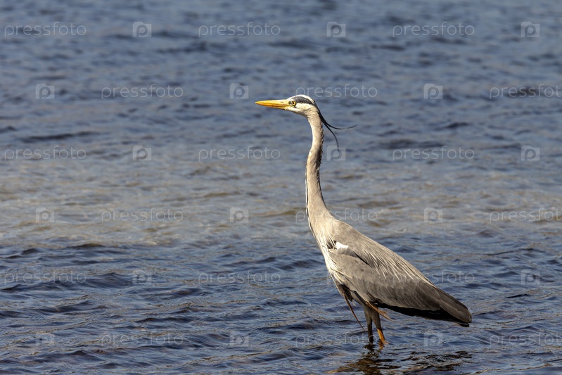 Большая серая смола (Ardea cinerea) в крупном плане (Греция, остров Кефалония)