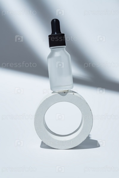 Макет флаконов-капельниц из матового стекла для брендинга лекарств или косметики - косметического масла, эфирного масла или сыворотки. Контейнер для косметических бутылок на белом фоне. Минимализм