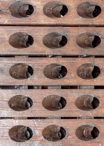 Узкие рейки располагаются в ряд. В каждой доске прорезано несколько отверстий