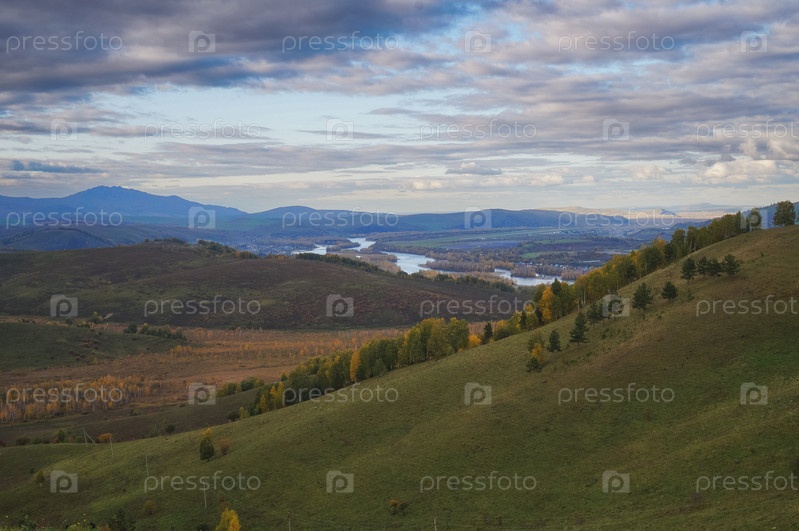 Горный пейзаж с рекой осенью. Алтай, Россия