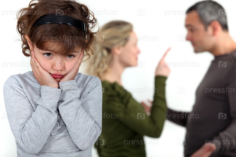 Милая маленькая девочка огорчена ссорой родителей