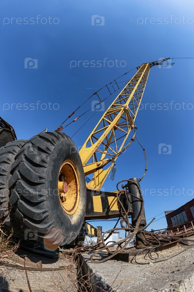 Колесный желтый автокран для погрузки тяжелого металла
